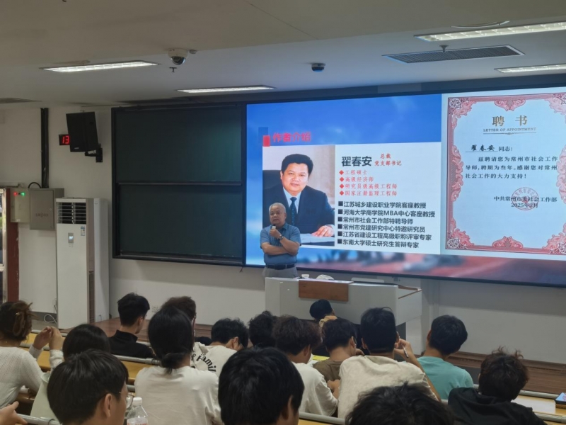 为深化产教融合,培养适应市场需求的高技能人才,10月9日,3044am永利集团面向2025级工程造价和建设工程管理专业全体新生开展“企业专家进课堂——入学教育专业引领”活动。学院客座教授、江苏安厦工程项目管理有限公司总裁兼党支部书记翟春安应邀作“放飞梦想,成就未来”主题讲座。