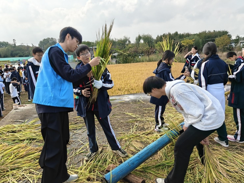 活动当天,身着统一志愿者服装的工管2501班同学们,精神饱满,列队整齐,成为生态园里一道亮丽的青春风景线。在谢丹的统一指挥和调度下,同学们以小组为单位,迅速投入到志愿服务中。他们热情洋溢,以“大哥哥”“大姐姐”的身份,耐心细致地陪伴在小朋友们身边。在“稻谷收割体验区”,志愿者们化身“小老师”,生动讲解农具的使用方法,并指导孩子们安全地完成稻谷收割、脱粒等环节,引导孩子们亲身体验农作的辛劳与乐趣,领悟“粒粒皆辛苦”的深刻含义;在“萌宠乐园”,他们是贴心的“安全员”和“科普员”,时刻关注孩子们的安全,并风趣地介绍各种小动物的习性;在“豆腐坊”里,志愿者们化身传统工艺的“导师”,为孩子们详细讲解豆腐从豆子到成品的奇妙旅程。志愿者们不仅是指引路径的“导游”,更是传递知识与温暖的“桥梁”。他们用青春的活力感染着每一位小朋友,用细致周到的服务确保了整个研学活动的井然有序与寓教于乐。